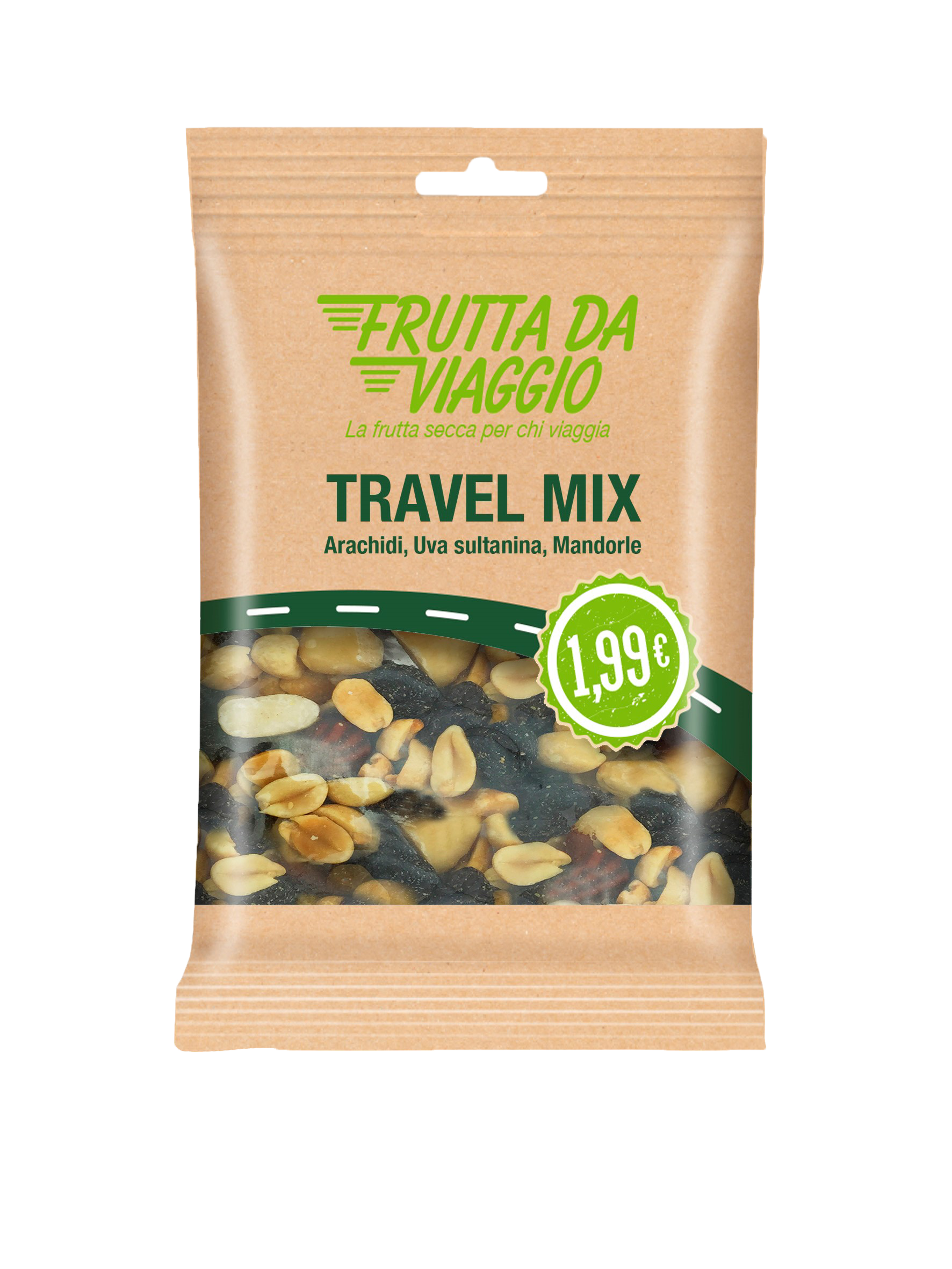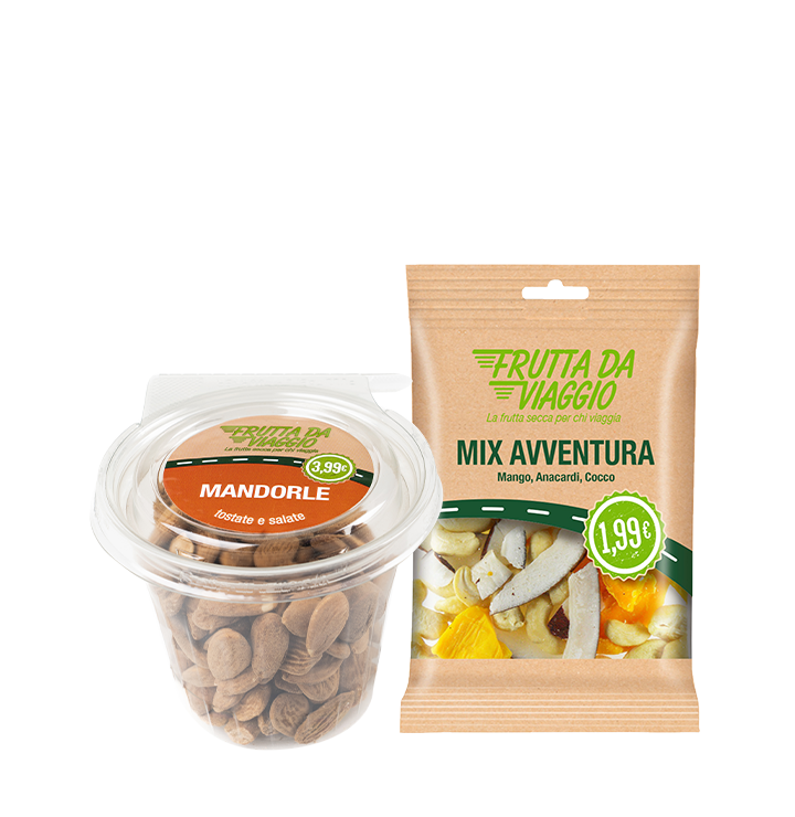 Frutta da Viaggio è la frutta secca pensata appositamente per le esigenze di chi viaggia. Pratica, gustosa ed energetica, Frutta da Viaggio è disponibile dove e quando ti serve.